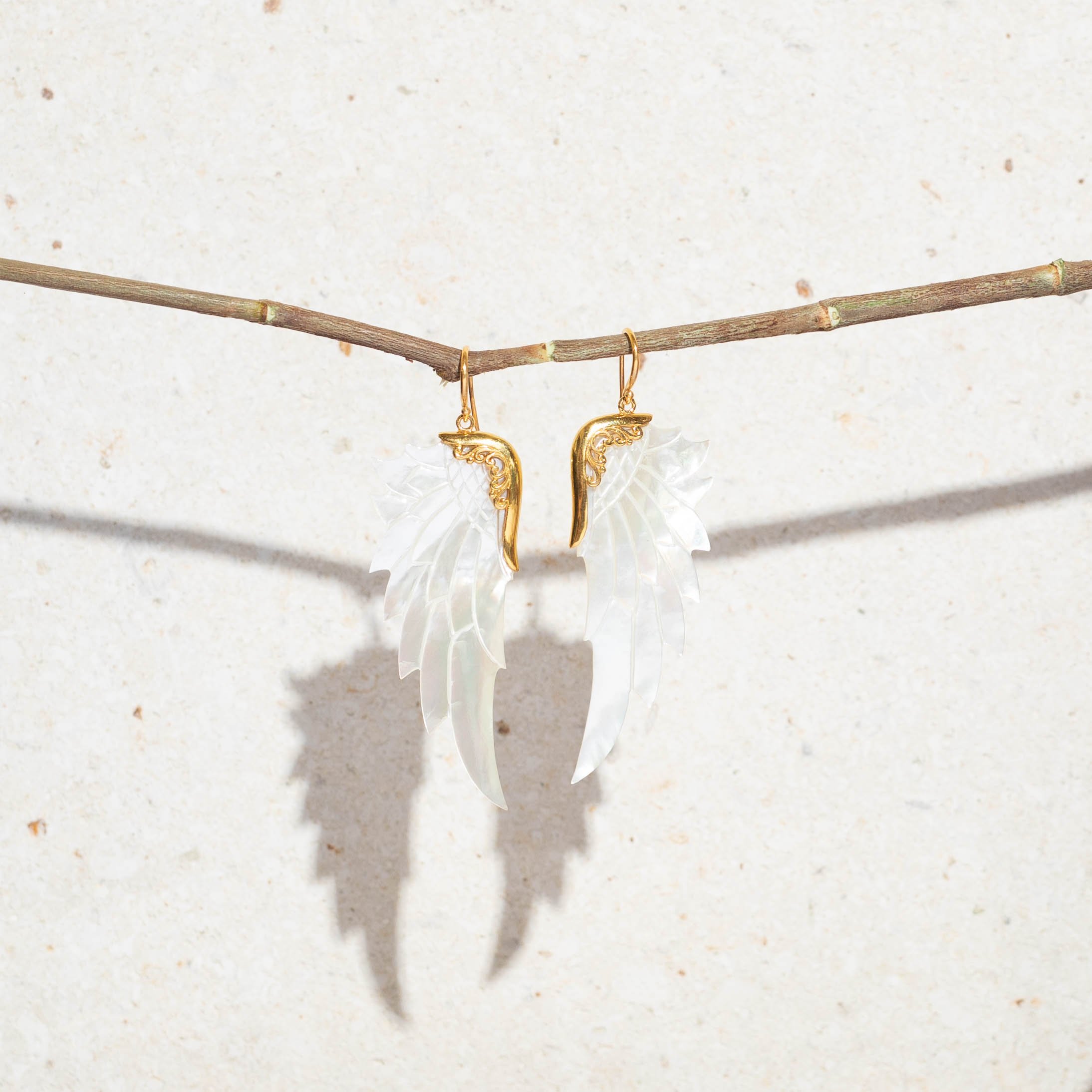 Hand-carved from ethically sourced oyster shell, each wing is sculpted in Bali by master artisans using shell harvested from sustainable pearl farms — honoring both craft and Earth. With graceful symmetry and bold length, this talisman captures the spirit of divine alignment: a symbol of protection, ascension, and lightness of being.